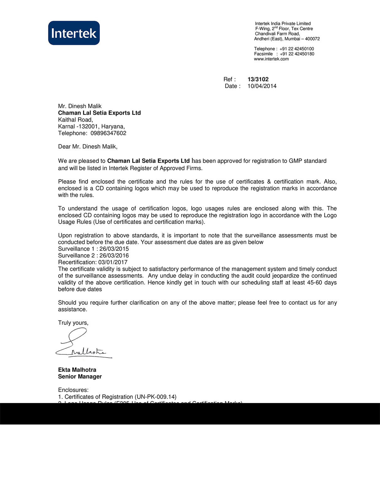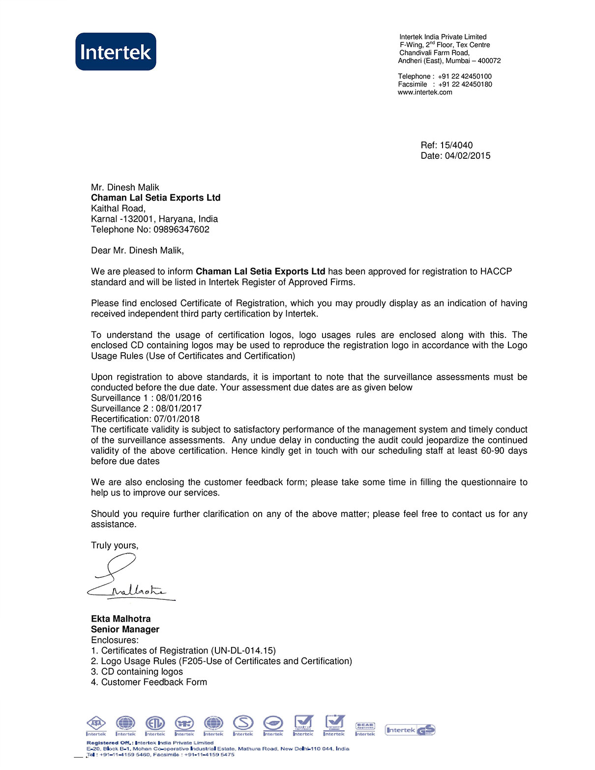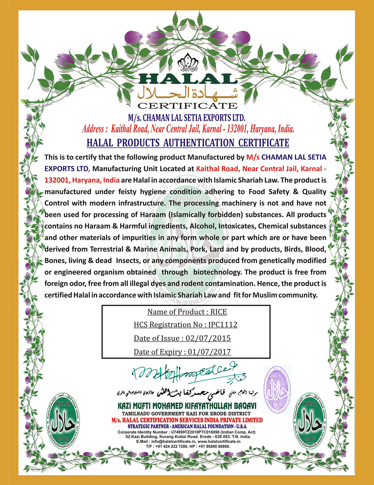 Mr. Vijay Setia, the Executive Director is an Ex-President of All India Rice Exporters Association. Regd. (AIREA), Delhi.